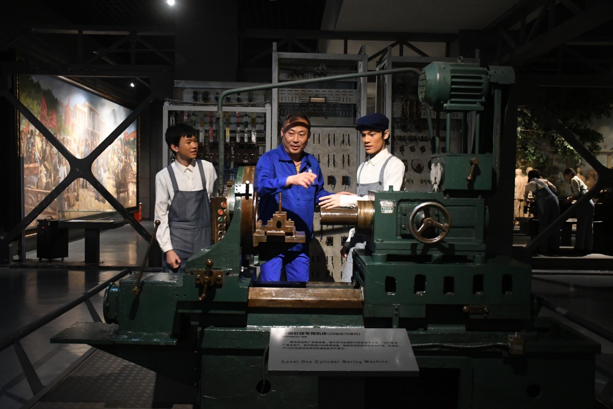 “有了它,我们柳州汽车工业将谱写新的篇章!”柳州工业博物馆内,演员们将红布一把揭下,高10米的双动压力机展现在现场观众面前。柳州工业博物馆创新性地将小剧场“搬”进了展览中,推出的沉浸式导览剧《工业国潮》,让观众在移步换景中穿越柳州百年工业历程,实现“展”与“演”的有机融合。