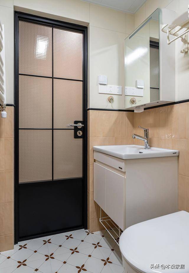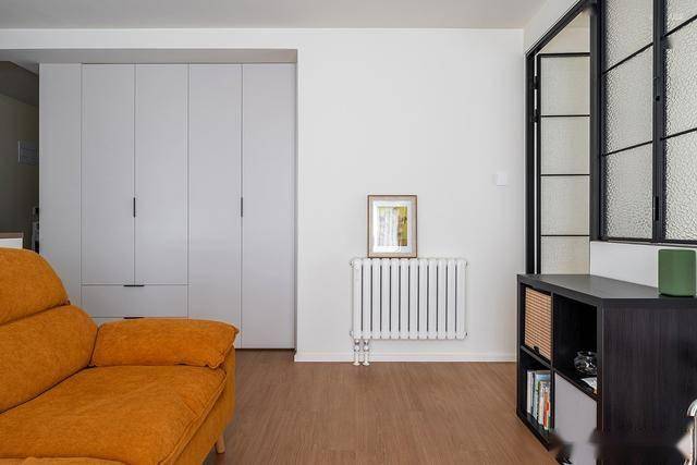 客厅与卧室之间使用黑钢玻璃做隔断,划分不同功能空间的同时,视觉显大又通透,对于小户型来说值得借鉴。