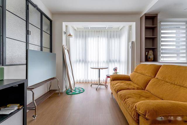 当打开冰裂玻璃窗时,空间秒变成一个开放式的大通间,将采光和通风效果值拉满。